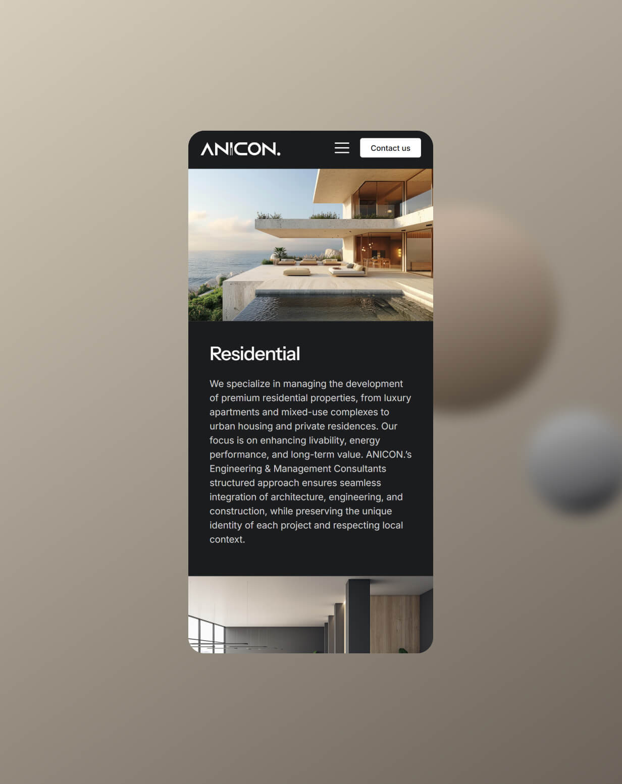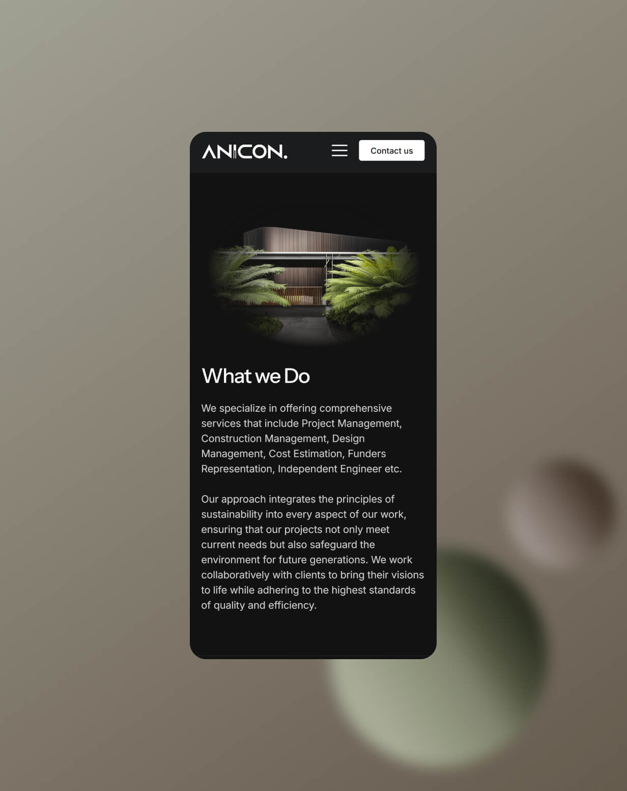 The website was designed to reflect ANICON’s forward-thinking spirit — a seamless blend of precision, sophistication, and sustainability. Through a refined digital experience, we showcased the brand’s expertise across sectors while ensuring effortless access to project insights and services.