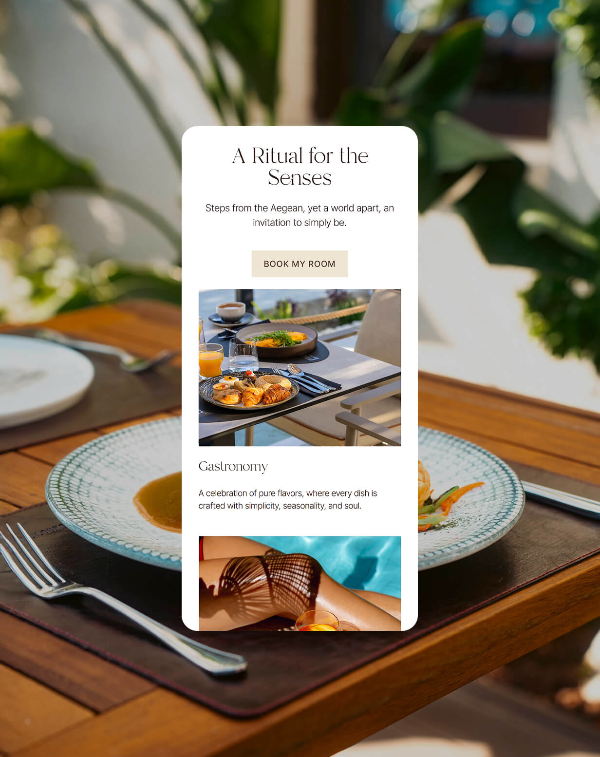 We crafted a fully custom website that mirrors CABU’s serene atmosphere through refined design, immersive visuals, and seamless functionality — an elegant digital reflection of the hotel’s unique character.